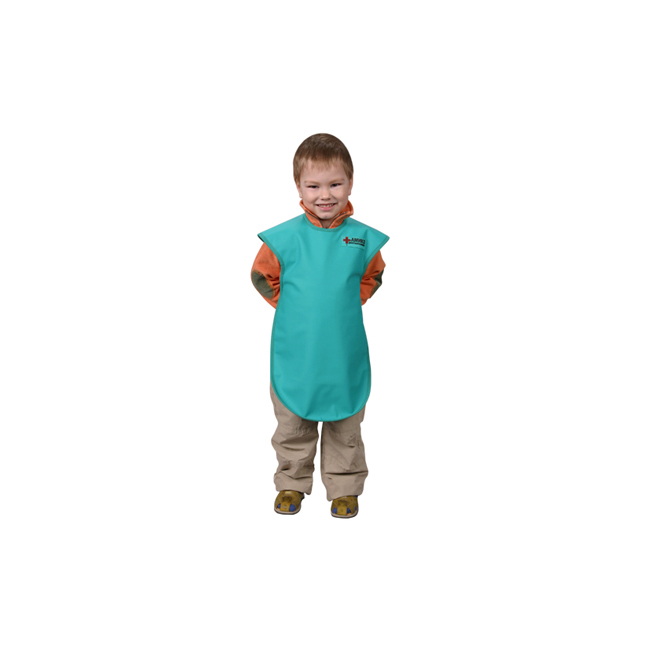Фартук односторонний защищает тело ребенка спереди, включая плечевой пояс, от области горла до голеней. Рекомендуется применять при снимках зубов, головы и конечностей в комплексе с воротником для дополнительной защиты щитовидной железы. Свинцовый эквивалент - 0,35 мм Pb. Рассчитан на детей ростом от 120 до 134 сантиметров.