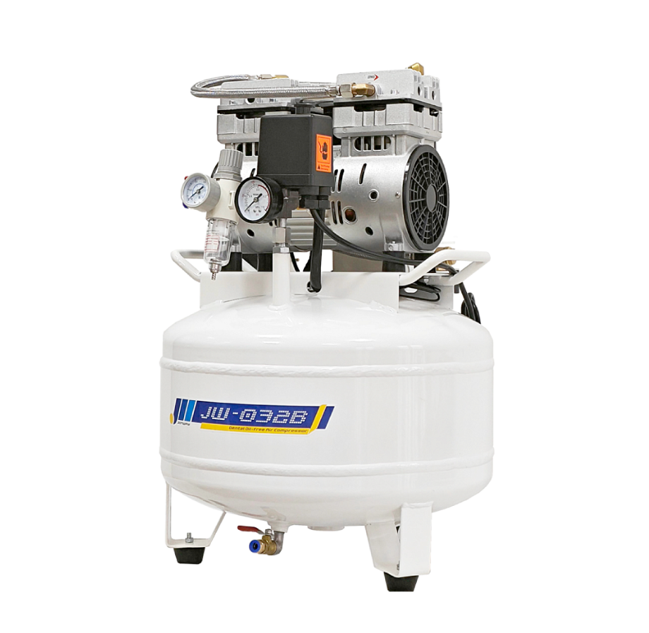 • Безмасляный стоматологический компрессор для 1 стоматологической установки, с ресивером 45 л и производительностью 100 л/мин.