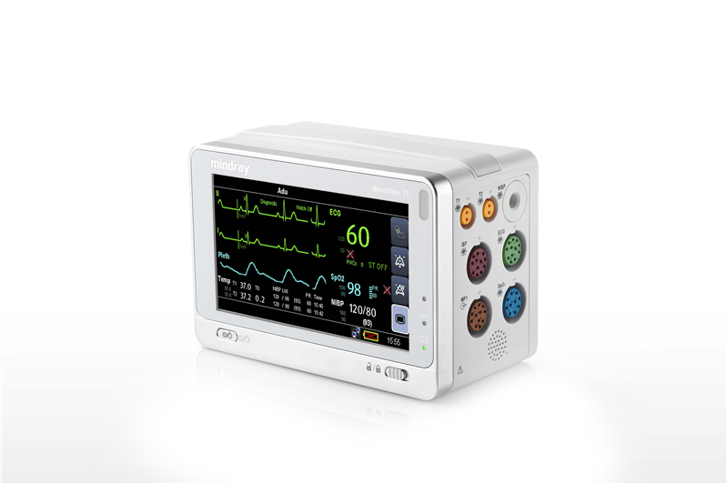 Монитор пациента BeneView T1 разработан специально для мониторинга в условиях мобильной медицины. Аппарат компактен, легок, имеет простую систему подключения. Устройство системы питания и хранения информации обеспечивает максимальную сохранность данных в любых условиях. Вес монитора менее 1 кг, размеры: 142 мм х 102 мм х 81 мм Монитор оснащен эргономичной ручкой для переноски, легко устанавливается на инфузионной стойке или спинке кровати. Встроенный литий-ионный аккумулятор рассчитан на 5 часов непрерывного мониторинга. Параметры мониторинга     ЭКГ (3/5 отведений).     Частота дыхания.      Неинвазивное измерение кровяного давления.       SpO2 (технология Mindray).      ЧСС.     Температура (2 канала).     Работа с любыми группами пациентов.     Технические характеристики     5” цветной сенсорный ЖК-дисплей.     Интуитивно понятный русифицированный интерфейс и эргономичный дизайн.      До 5 часов работы от аккумулятора.     Возможность «горячей» замены аккумуляторной батареи без прерывания мониторинга.   Опции и аксессуары         Модуль ЭКГ (12 отведений).         Модуль SpO2 (Masimo или Nellcor).         Модуль ИАД (2 канала).          Модуль сердечного выброса (метод термодилюции).         Модуль СO2: mainstream, sidestream или microstream.