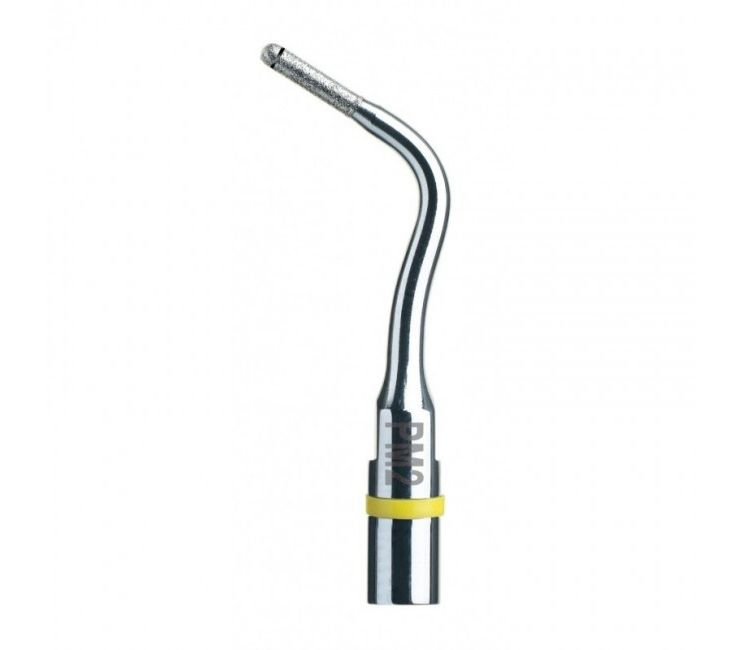 Насадка для скайлера PM2, с алмазным покрытием, для препарирования уступа. Выпукло-закругленный кончик. Следующая после PM1, менее абразивная. Ортопедия. Желтая полоса