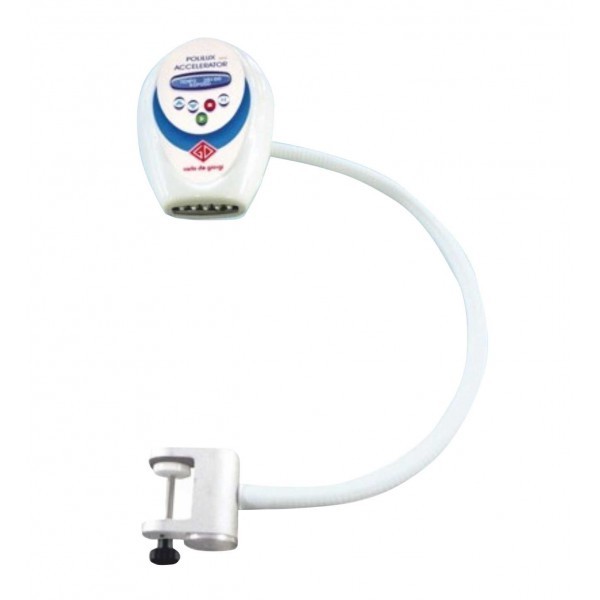 • Polilux Accelerator – устройство, предназначенное для профессионального отбеливания зубов, на базе мощного источника излучения в голубой полосе спектра. Метод основан на применении специального геля с высоким содержанием перекиси водорода (около 35%). Отбеливающая лампа Polilux Accelerator ускоряет процесс воздействия геля благодаря длине излучаемых волн и мощности источника света, что позволяет получить великолепный результат всего за 20 минут лечения.