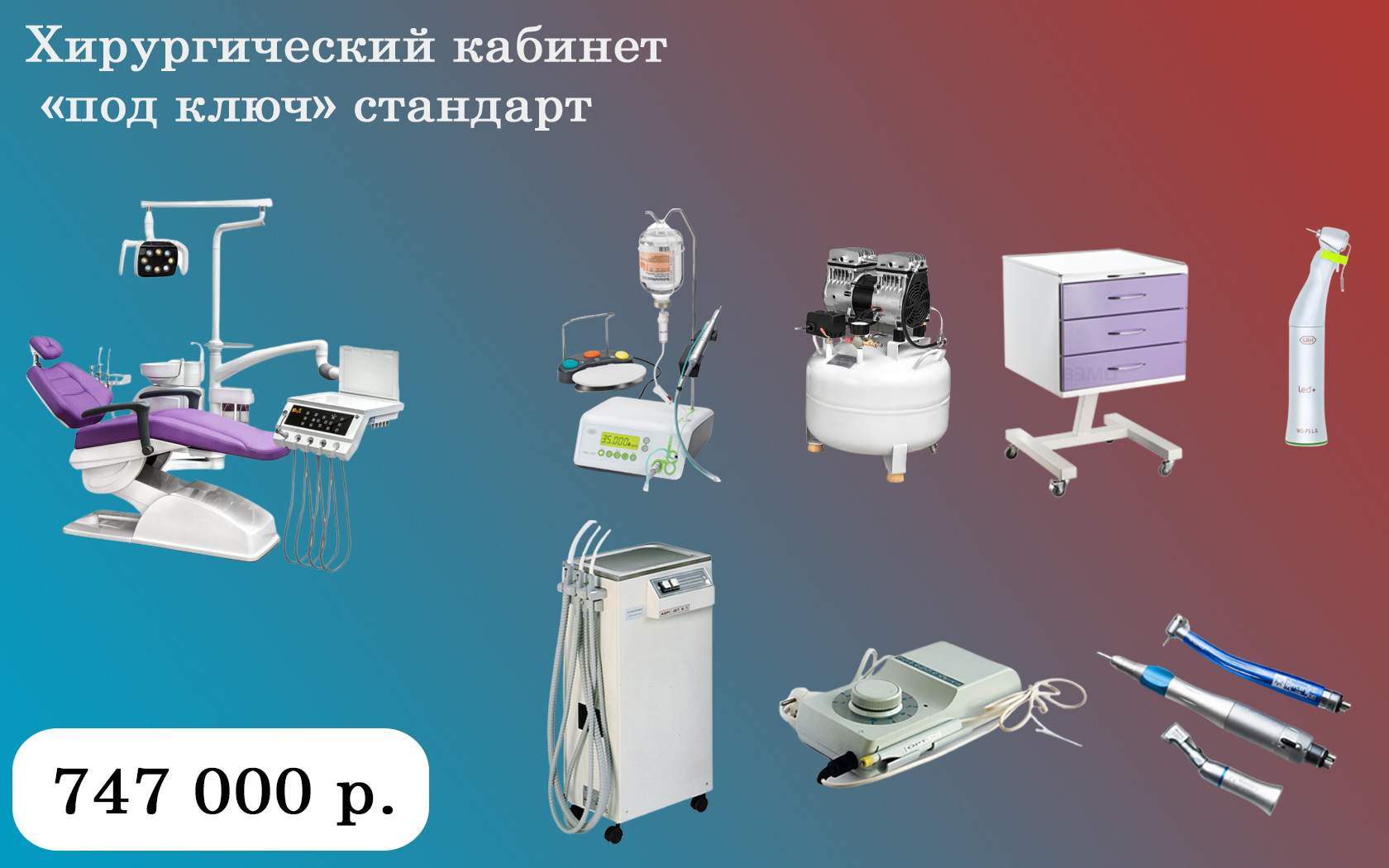 • Комплексное предложение для тех, кому нужно купить оборудование для стоматологического хирургического кабинета «под ключ».