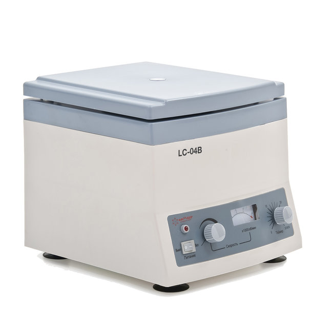 • LC-04B - высокоскоротная лабораторная центрифуга с плавной настройкой скорости вращения барабана в широком диапазоне. Необходимые параметры можно установить с помощью двух механических регуляторов - ручки регулировки скорости и ручки установки времени вращения. Включение питания и запуск центрифуги в работу осуществляется одной клавишей на центральной панели.